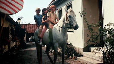 Die Titelheldin Pippi stürzt sich mit ihren Freund:innen Tommy und Annika in ein Abenteuer. Die Kinder reissen von Zuhause aus.