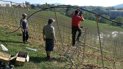 Juni 2017, an einem Südhang im Osten der Stadt Bern schlummern 7000 Reben-Stecklinge und warten auf den Sommer. Sie wissen noch nichts vom Frost, von der Mäuseplage, dem Mehltau und der Trockenheit in den folgenden Jahren. Der Winzer Matthias Rindisbacher, Mitarbeitende und viele freiwillige Helferinnen und Helfer pflegen und hegen sie. Viele Maschinen, Geduld und Geld braucht es und sehr viel Handarbeit. Im Herbst 2022 endlich die erste richtige Ernte, 4 Tonnen Sauvignac-Trauben. Daraus entsteht im Kirchenfeldquartier der erste Jahrgang «Troublant», ein Weisswein und damit der erste Wein aus 100% Stadtberner Produktion seit 400 Jahren.