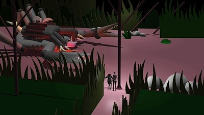 Eine scheinbar idyllische Liebesbegegnung entpuppt sich als Beginn einer surrealen Odyssee einer geschlechtslosen Figur. Reise der Schatten reflektiert, was den Menschen im technologischen Zeitalter zum Menschen macht.